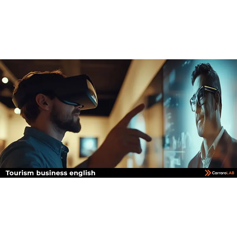 Un primo modulo visualizza gli ambienti classici degli operatori turistici: l’hotel e altre strutture ricettive, l’agenzia di viaggi, l’info point turistico, alcuni snodi dei trasporti passeggeri. In questi ambienti si incontrano i termini tecnici contestuali, sotto forma di voci di glossario scritte e pronunciate verbalmente. Dopo questa fase, lo studente affronta la conversazione con una avatar addestrato a interagire in inglese nelle situazioni professionali tipiche.
